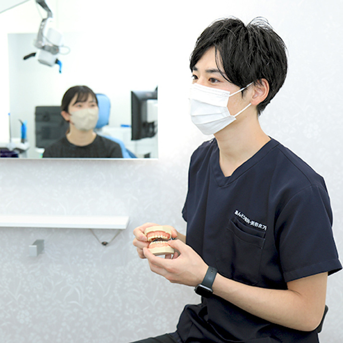 まずお悩みや理想のイメージを丁寧にヒアリングし、歯の状態、セラミック素材の特徴、治療方法、費用、期間などをわかりやすく説明します。一人ひとりに合わせた最適な治療プランを提案し、不安や疑問をしっかり解消した上で治療を進めるため、初めての方も安心してご相談いただけます。