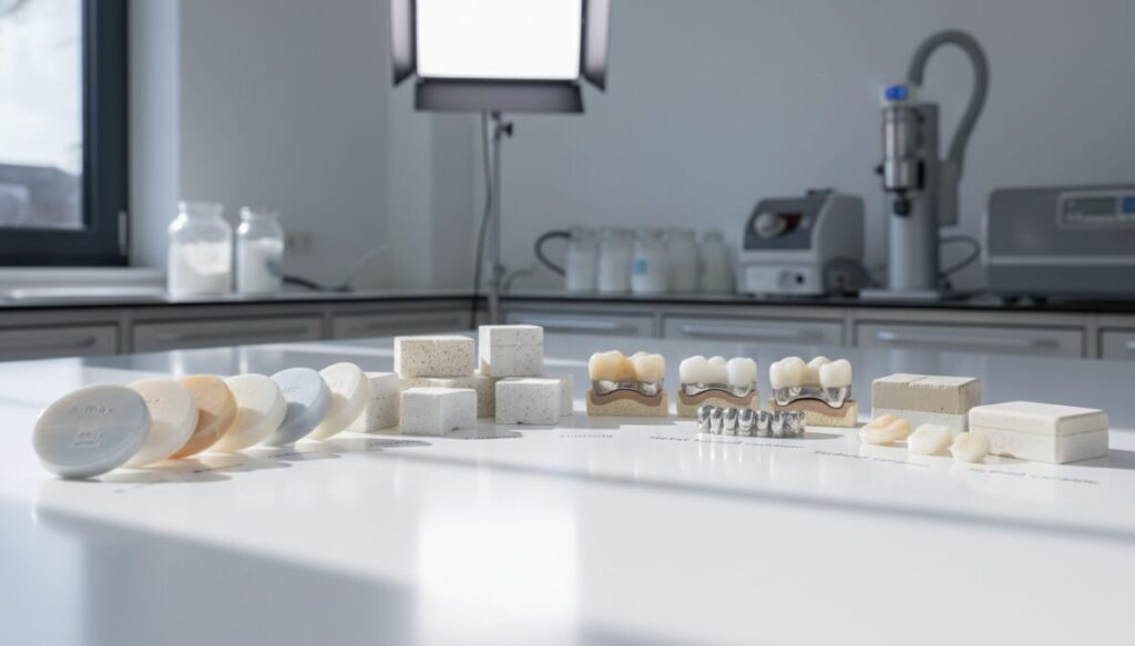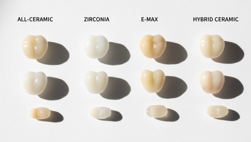 セラミック治療で使用される素材には主に4種類あり、それぞれ特徴と価格が異なります。素材選びは見た目の美しさだけでなく、強度や耐久性、そして予算とのバランスを考慮することが大切です。