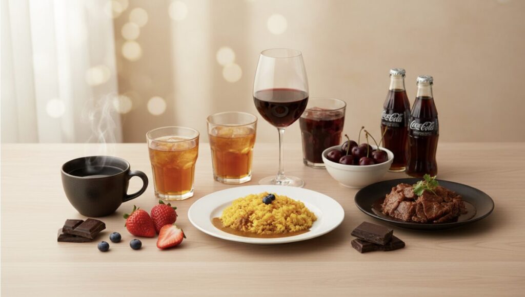 ホワイトニング直後の歯は色素を吸収しやすいため、コーヒー・紅茶・赤ワイン・カレーなど着色しやすい飲食物は特に注意が必要です。