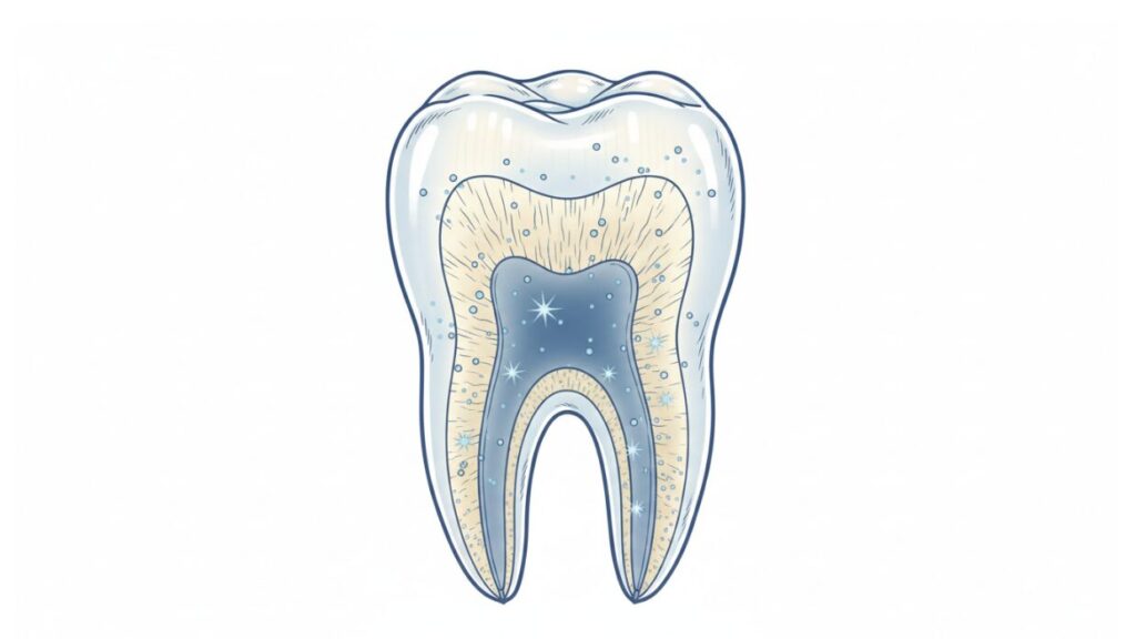 歯は外側のエナメル質が半透明で、その下の象牙質の色味が透けて見えます。ホワイトニングで色素が薄くなると、象牙質の黄みが目立ちにくくなり、本来の歯の明るさが引き出されやすくなります。