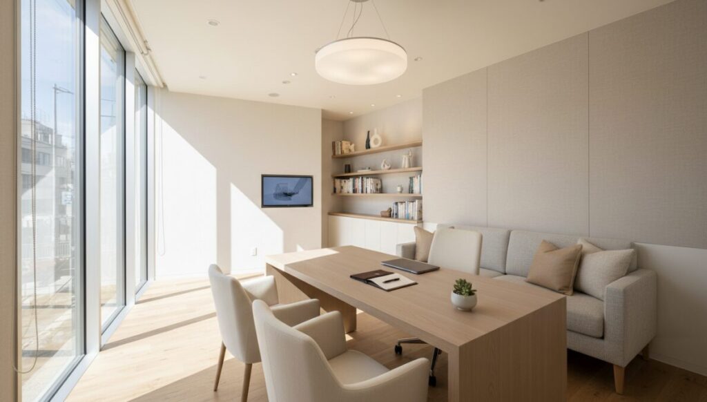 歯科医師と皮膚科医師がそれぞれ常駐し、すべて個室でリラックスして治療を受けられる環境が整っています。