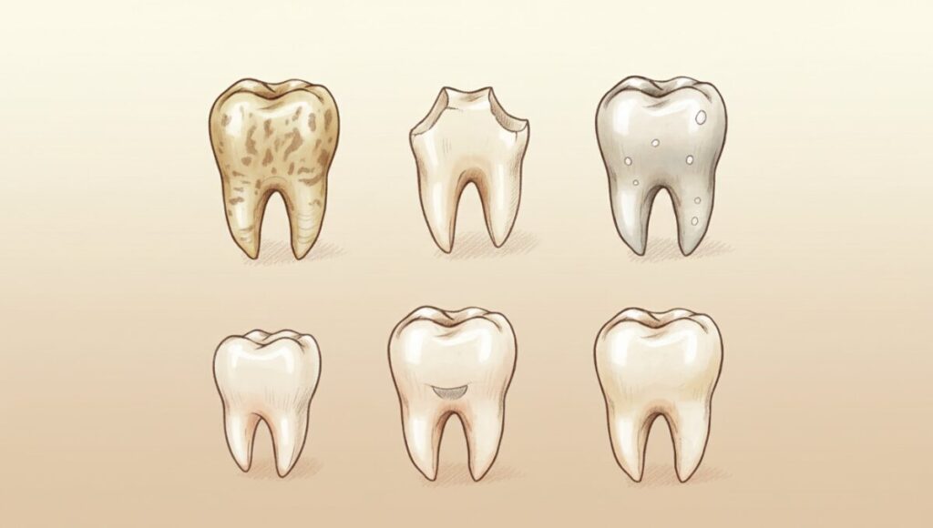 削る量は0.3~0.8mmと一見わずかに思えるかもしれません。しかし、これは歯の最も外側にあるエナメル質を削ることを意味します。エナメル質は歯を守る重要な役割を果たしており、一度削ると二度と再生しません。