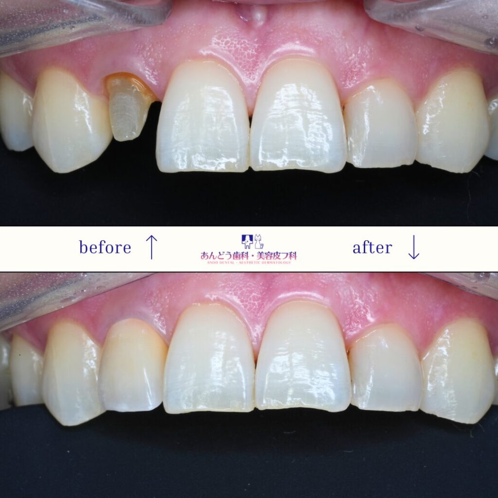 | 治療内容 | 右上2番にポーセレン焼付けジルコニアクラウンを装着しました。 通常のジルコニアクラウンと比較して、より自然な見た目に仕上がります。 隣の歯が天然歯の場合、価格は上がりますがこちらをおすすめすることが多いです。 前歯のセラミック治療は、見た目がとても重要です。 患者様とコミュニケーションを取り、満足度が高い治療を提供できるよう心がけています。 |
